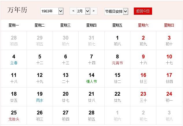 1963年2月 农历壬寅(虎)年癸丑月 建国14年