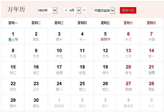 1963年4月 农历癸卯(兔)年乙卯月 建国14年
