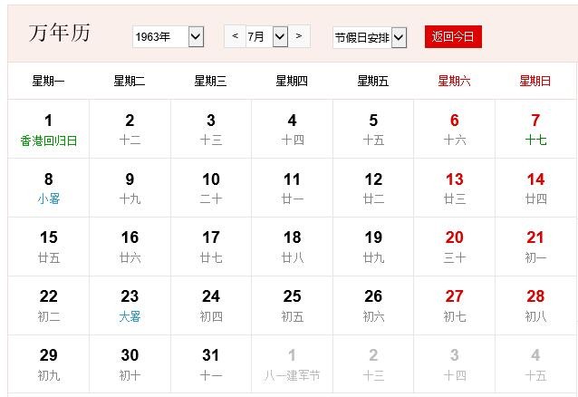 1963年7月 农历癸卯(兔)年戊午月 建国14年