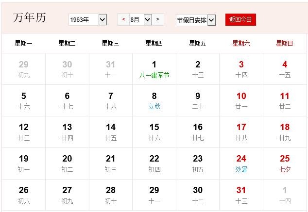 1963年8月 农历癸卯(兔)年己未月 建国14年