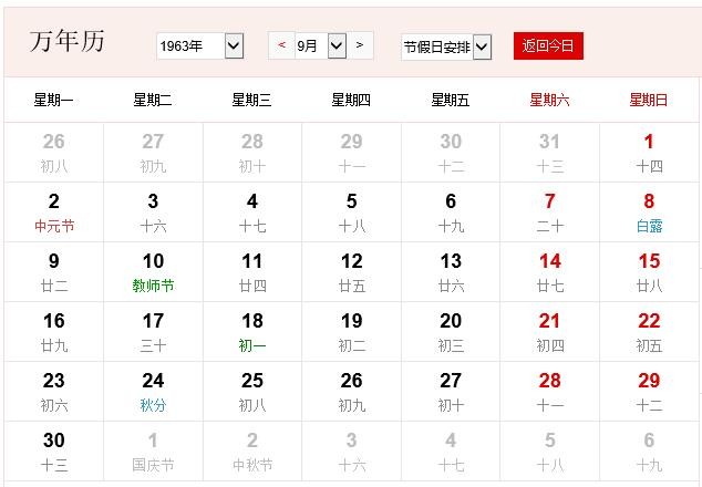 1963年9月 农历癸卯(兔)年庚申月 建国14年