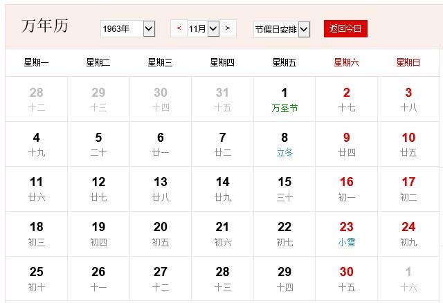 1963年11月 农历癸卯(兔)年壬戌月 建国15年