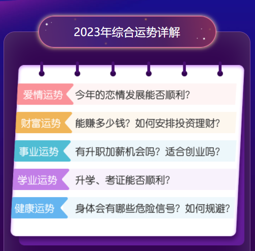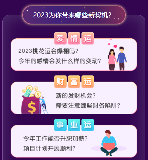 虽然说感情确实是很让人满意的发展,但是其他方面的发展不懂能不能也这么顺利,不妨点击查看下2023年综合运势详解。